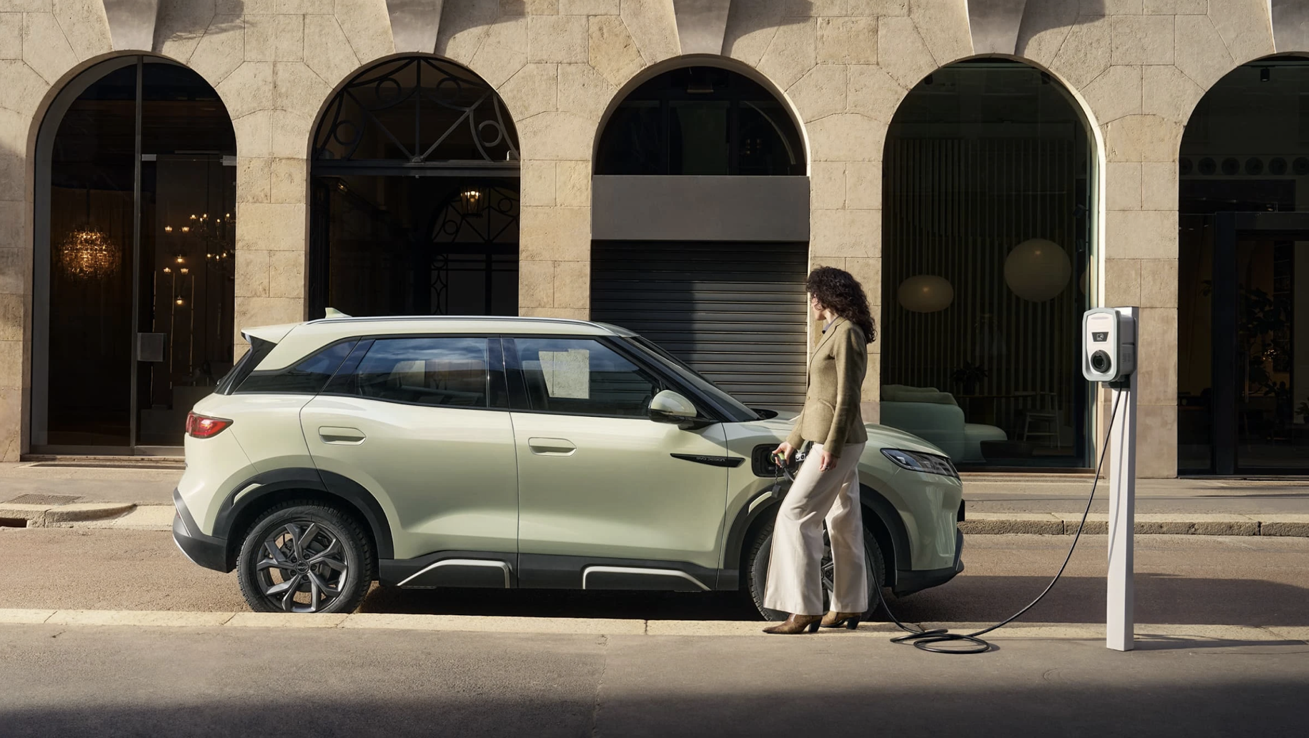 Diseñado por Wolfgang Egger, Director Global de Diseño de BYD, el YUAN PRO combina con éxito los rasgos de diseño de un SUV con unas dimensiones compactas; marcadas por sus cortos voladizos así como por unas impactantes curvas que crean un aspecto deportivo y robusto, capaces de resaltar la fuerza y fiabilidad del vehículo.